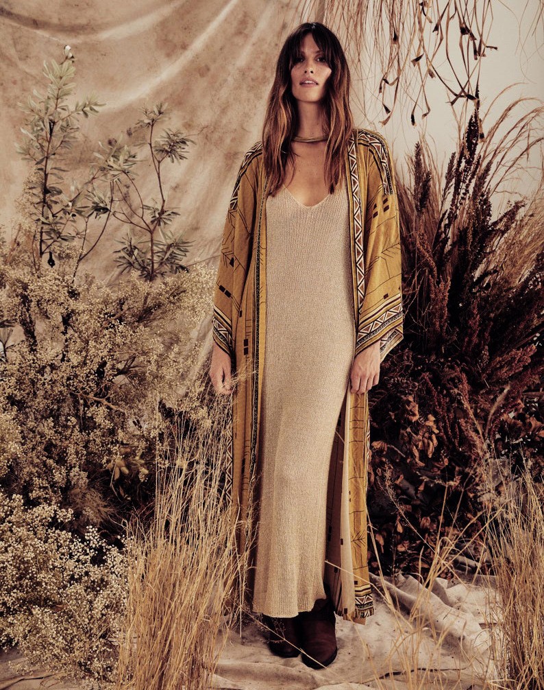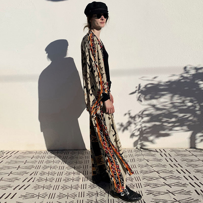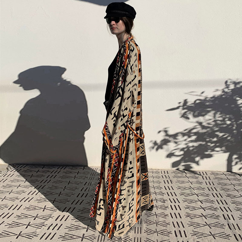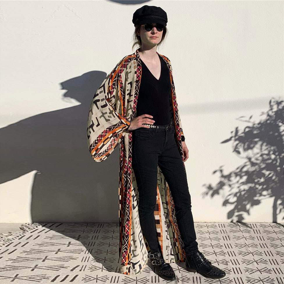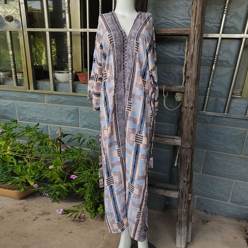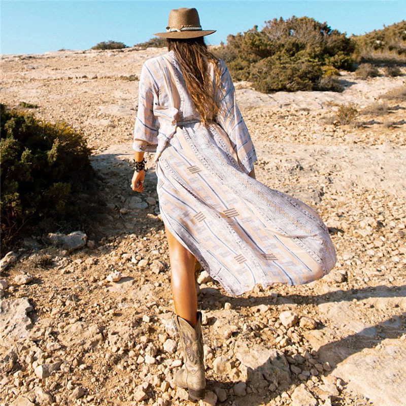 Boho Beach Robe Cotton Orange Ethnic Floral Print Kimono Vestidos Women Long Sleeve Tunic Top Blouses Cover up Boho